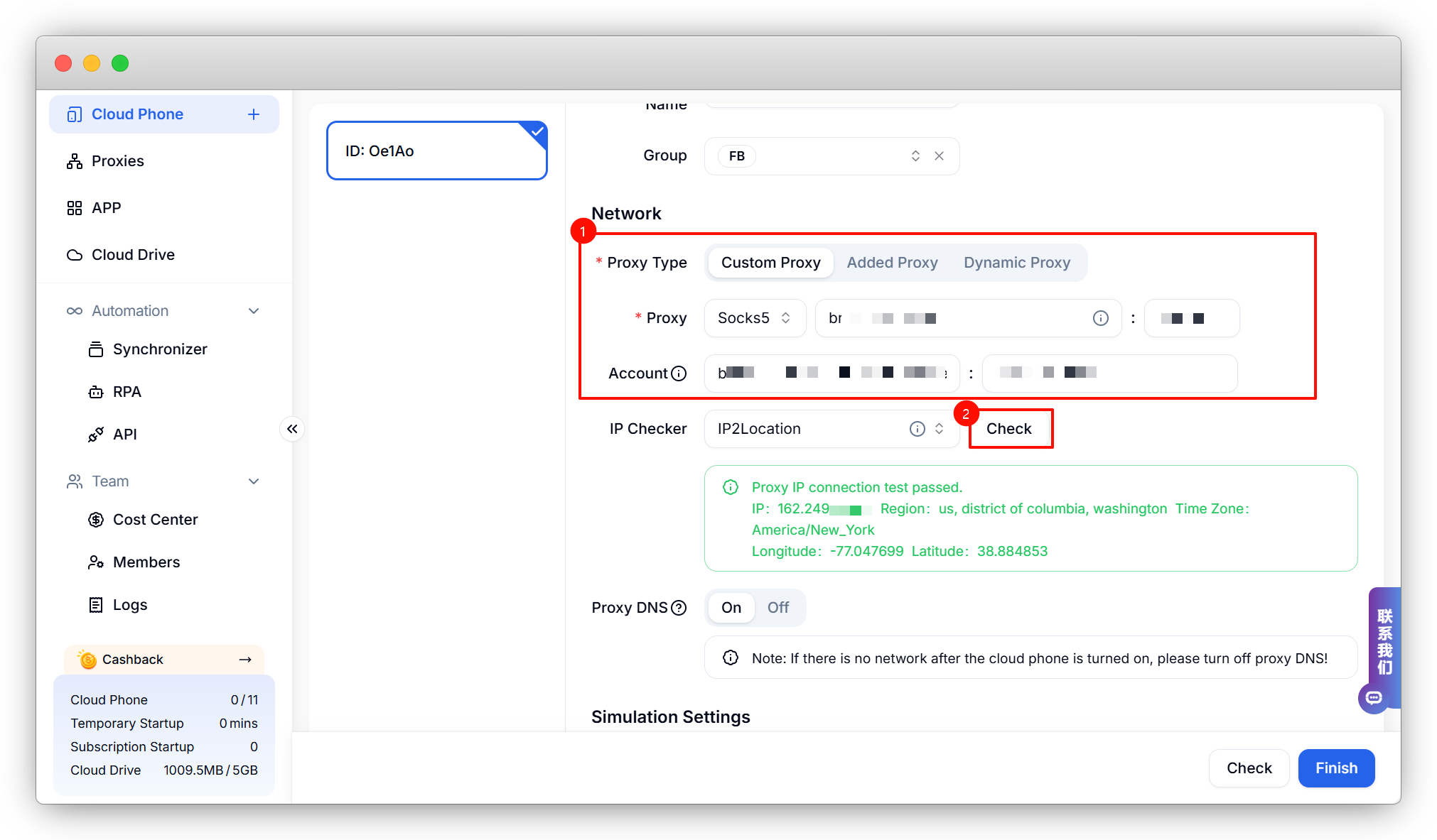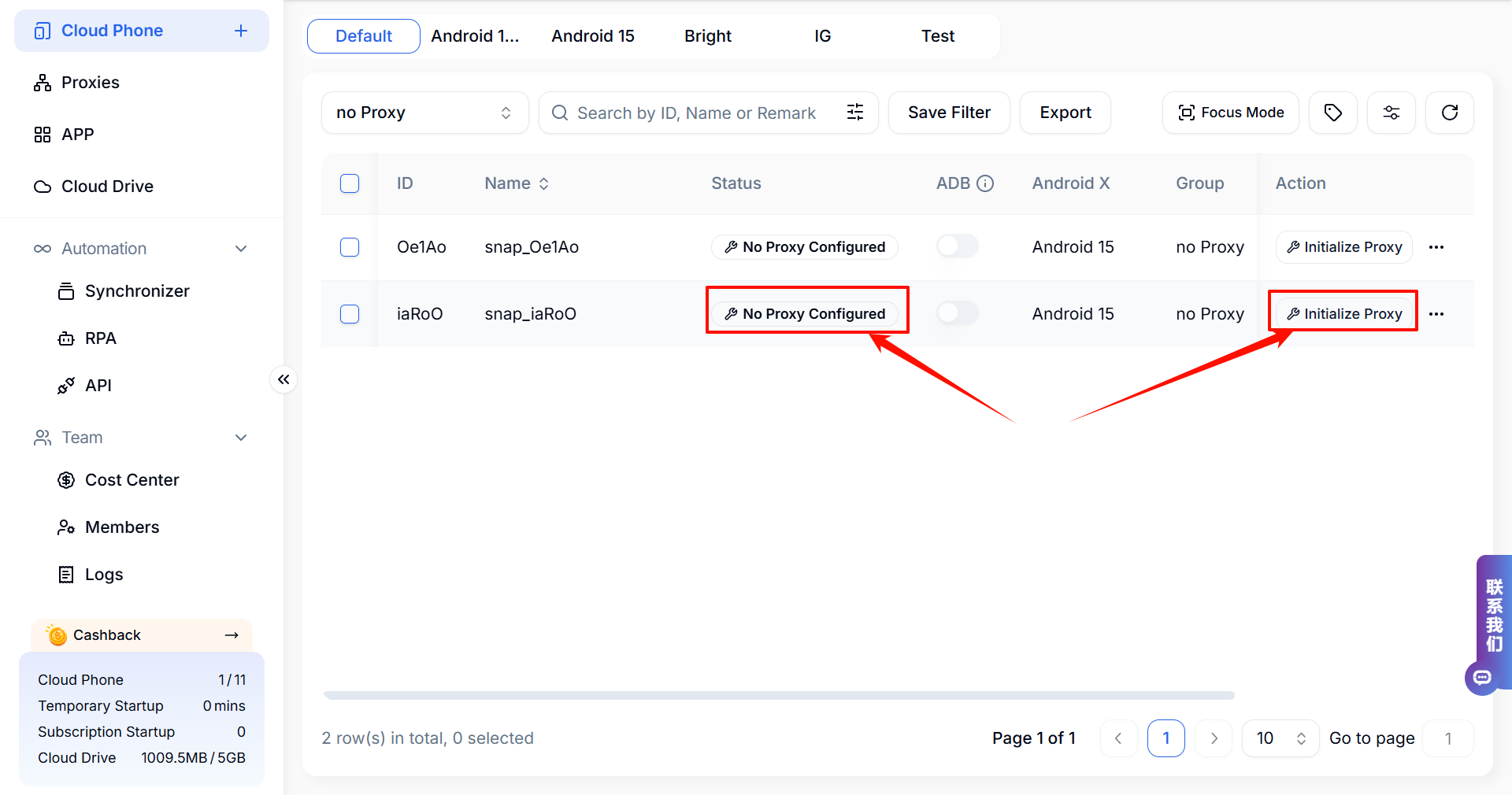 After the purchase, you will be automatically redirected to the proxy configuration page. If not redirected, you can access the proxy configuration page from the "Cloud Phones" list.