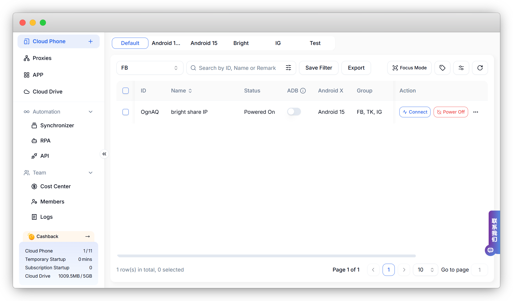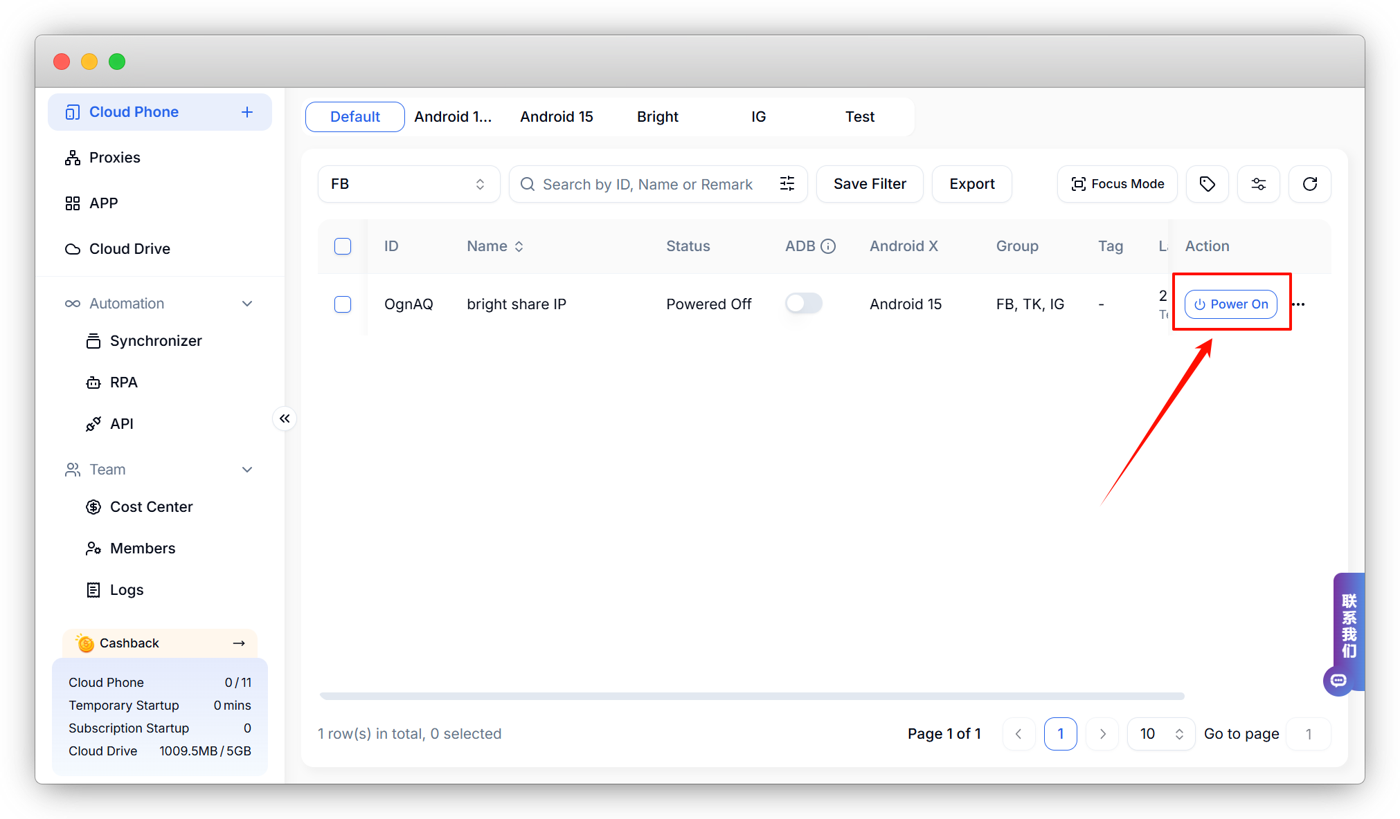 After configuring the proxy, click "Start" in the cloud phone list and wait for it to boot up.