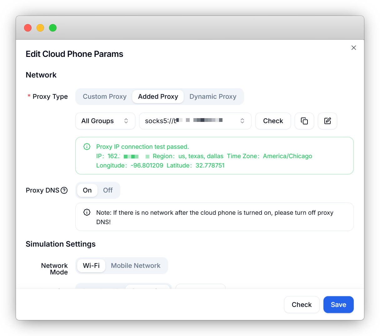 You can modify your mobile phone's proxy, GPS, SIM card switch, and timezone language information at any time.