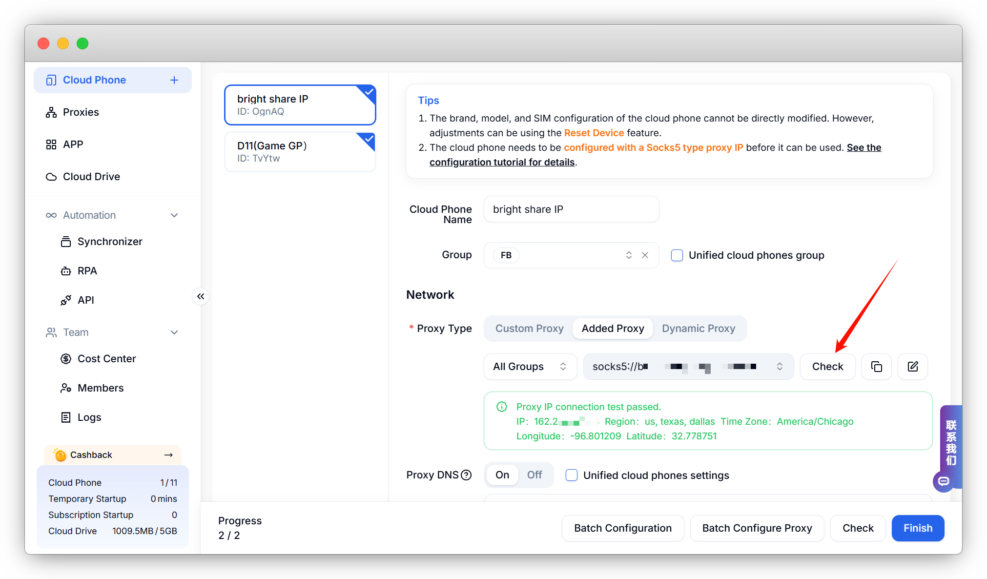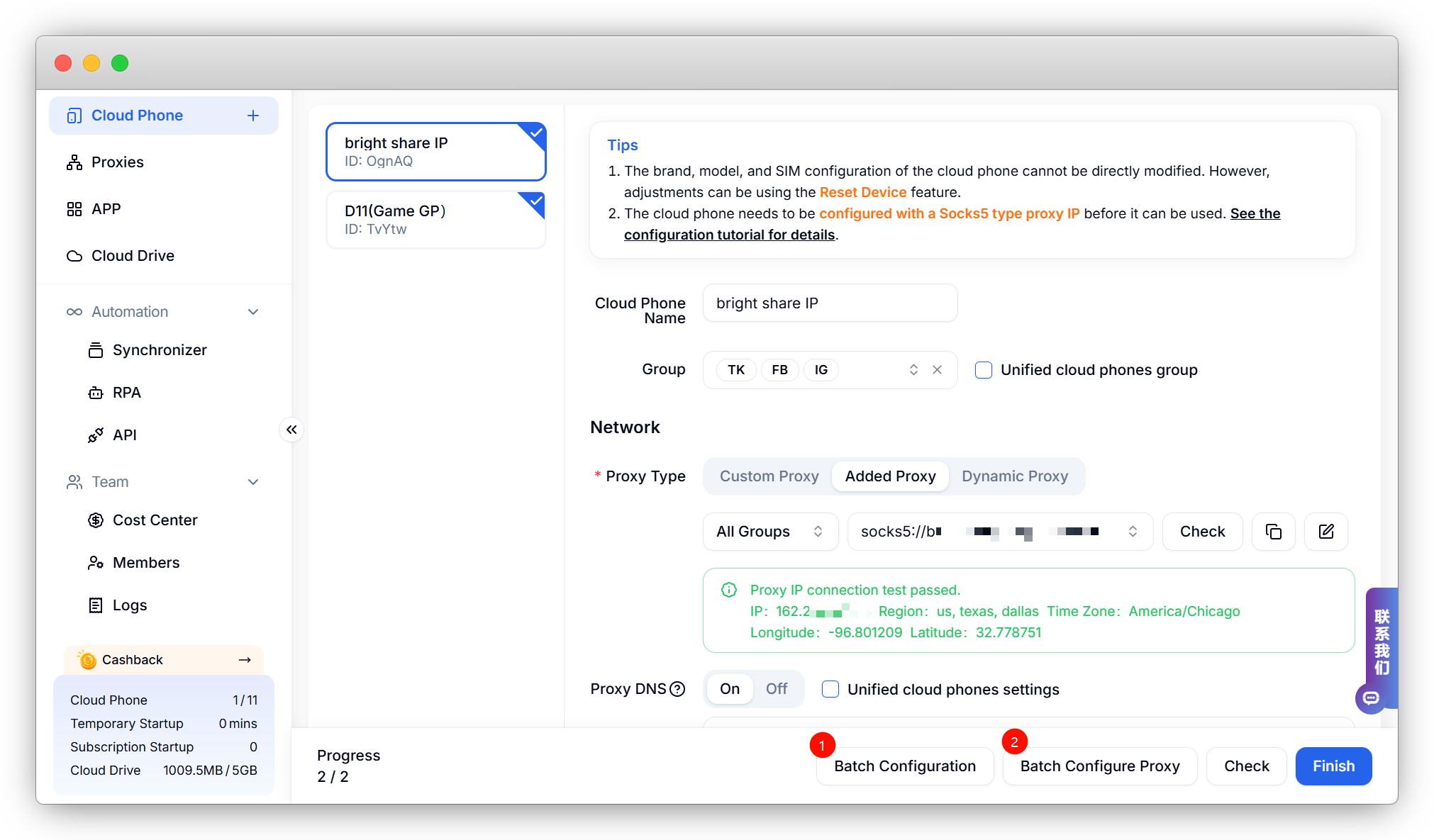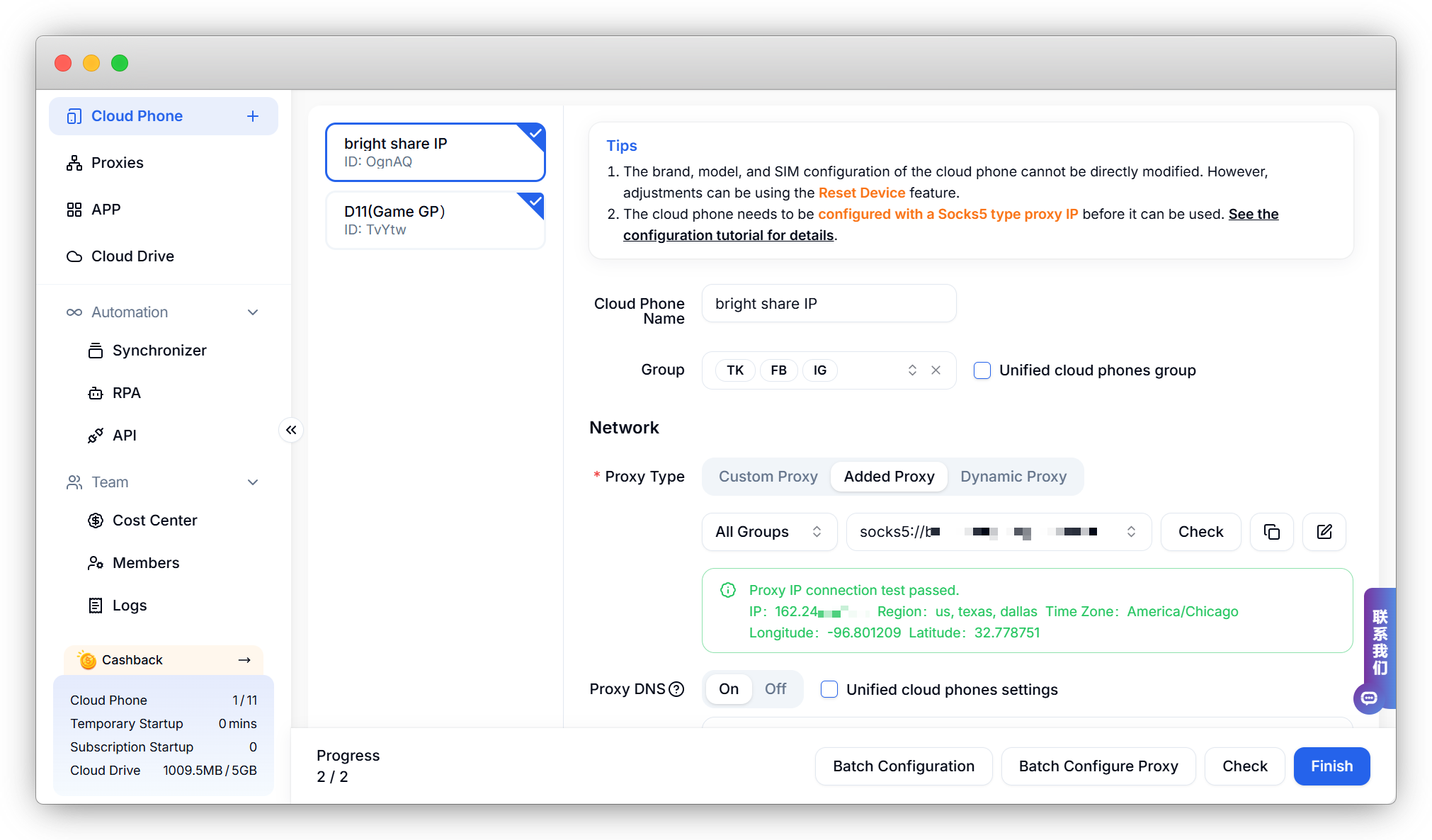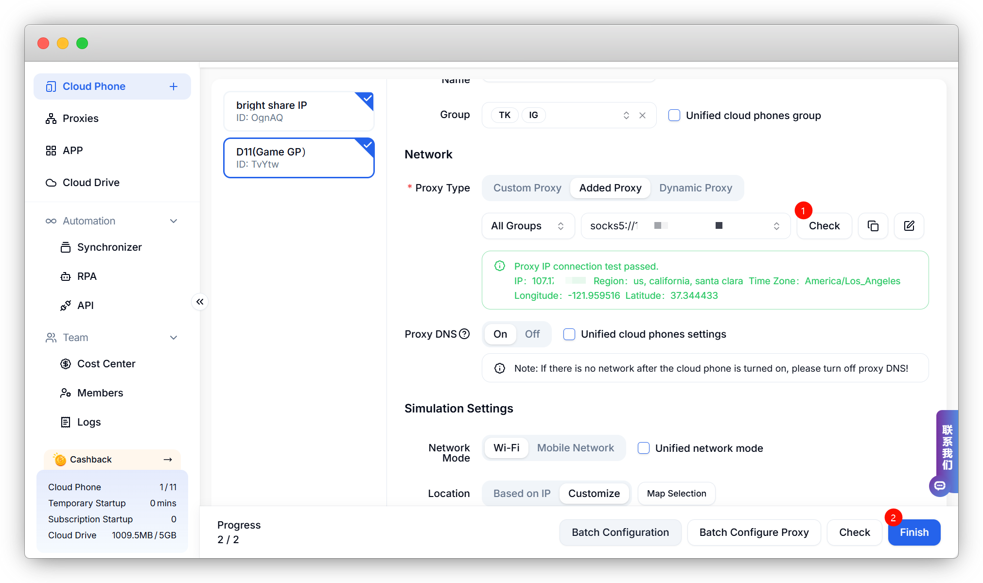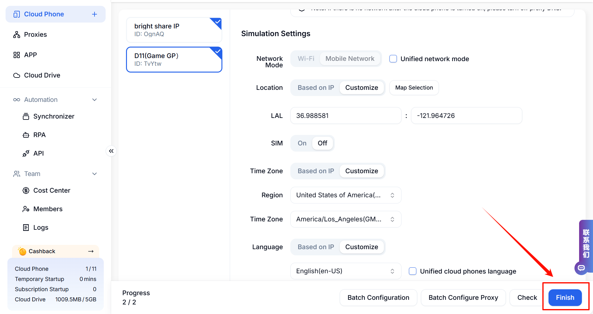 (2) Check the proxy for each cloud phone, and after confirming that everything is correct, click "Complete Configuration."